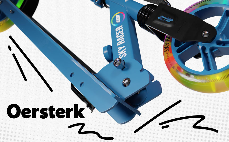 Een bijzonder hoogtepunt zijn de lichtgevende LED-wielen die door beweging geactiveerd worden en geen batterijen nodig hebben. De Skyracer is verkrijgbaar in diverse aantrekkelijke kleurvarianten, waaronder oranje, blauw, bont, roze/wit, groen/grijs, mint, roze/wit, zwart en Starlight.