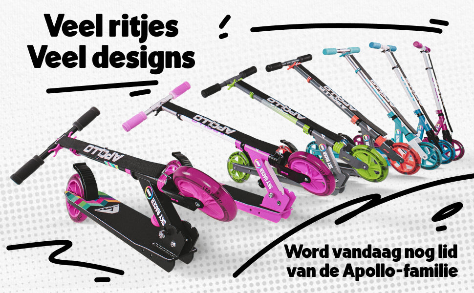 De Apollo Skyracer is de ideale metgezel voor kinderen vanaf 5 jaar en tieners die stijlvol en veilig door de stad willen cruisen. Met zijn lichte gewicht van slechts 2,6 kg en de schokdempende vering boven het voorwiel biedt hij een comfortabele rijervaring op verschillende ondergronden. De 145 mm grote High-Rebound PU-wielen met ABEC 7 kogellagers zorgen voor een soepele rit.