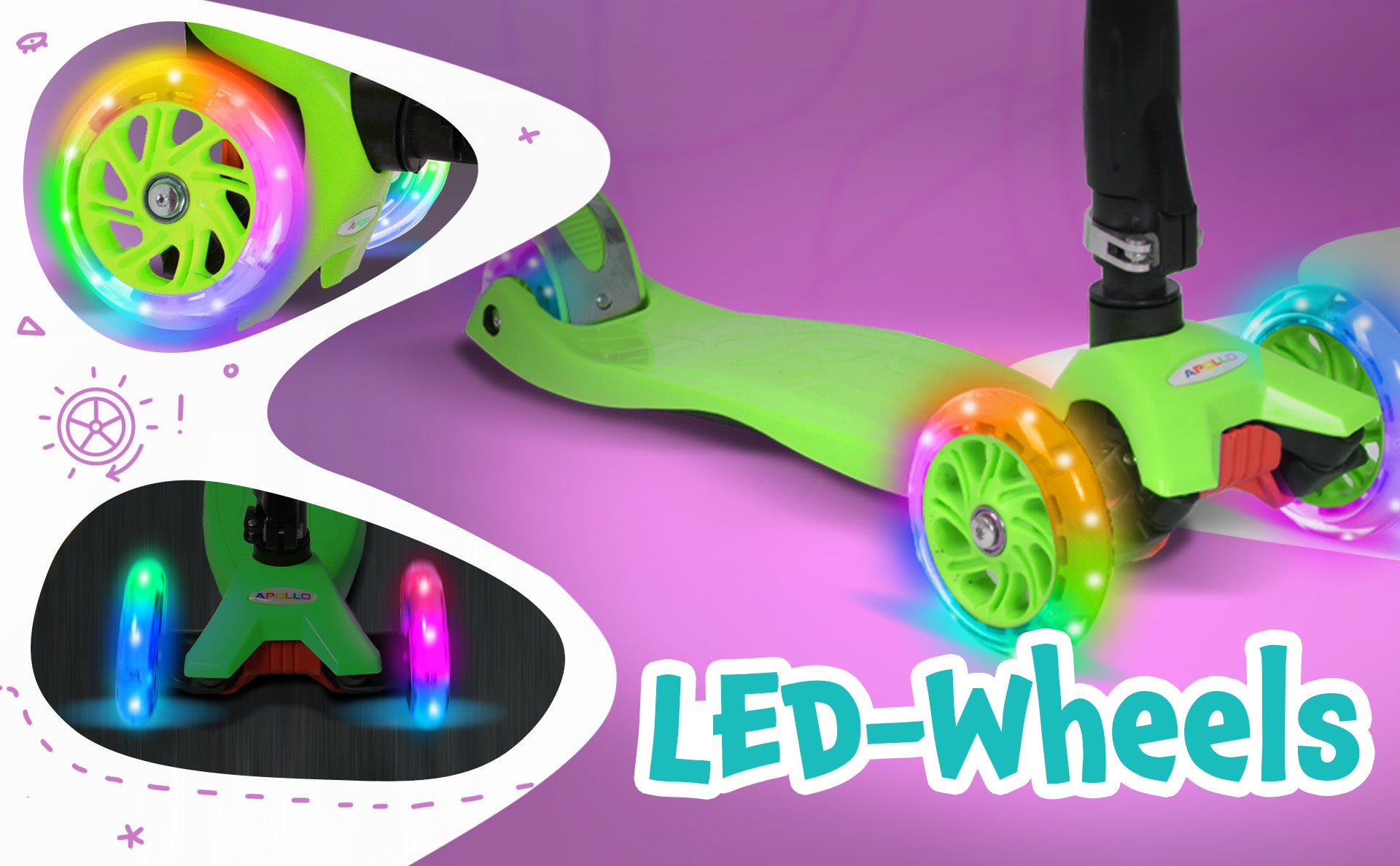 DRIVING PLEASURE: Apollo children's scooter for children aged 3 years and over (max. 60 kg). With an anodized handlebar and LED wheels, the ultimate eye-catcher!