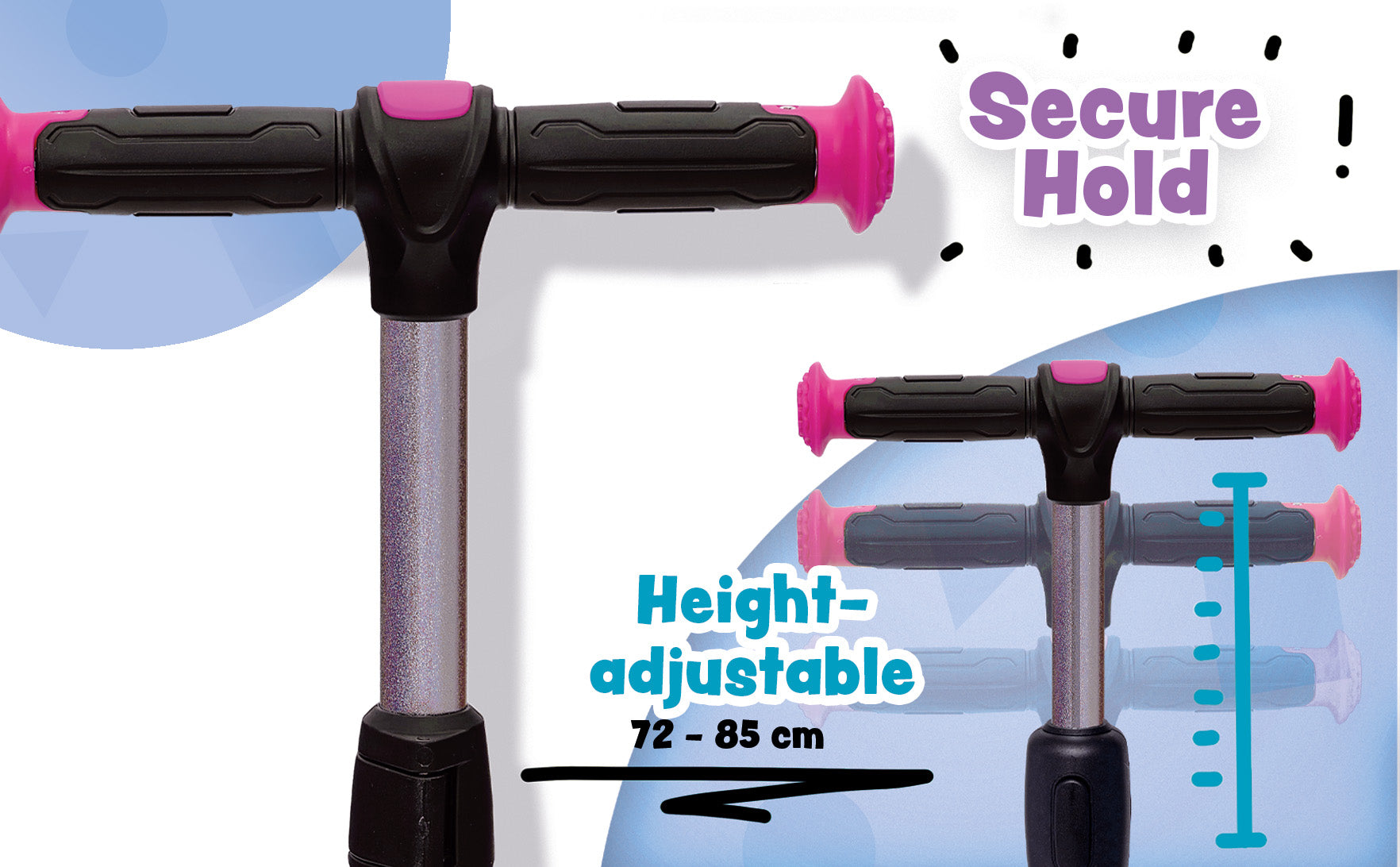 FLEXIBELE HOOGTE: Kickscooter in hoogte verstelbaar over 3 niveaus, tot 85 cm. Hierdoor blijft de step jarenlang klaar voor gebruik met opgroeiende kinderen.